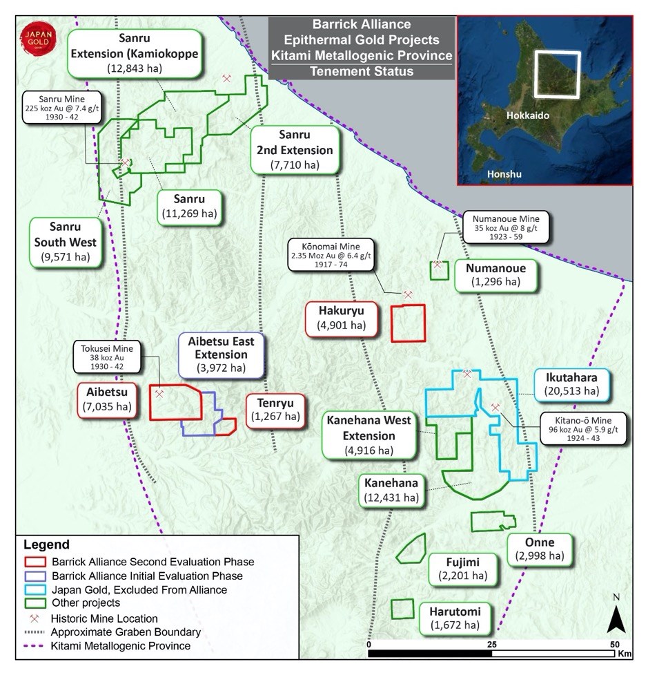 Figure 1: Barrick Alliance and Japan Gold Projects across Japan
